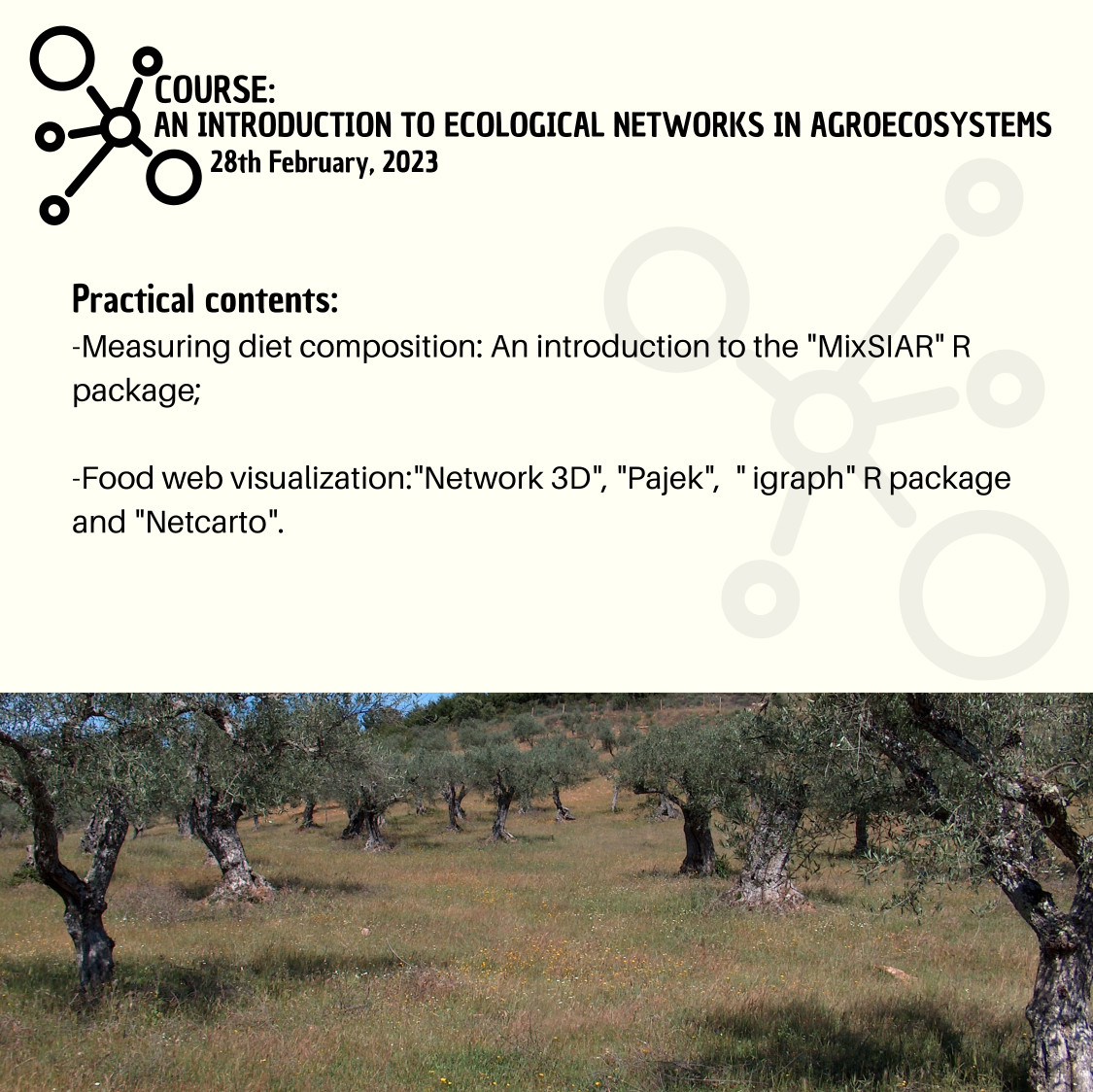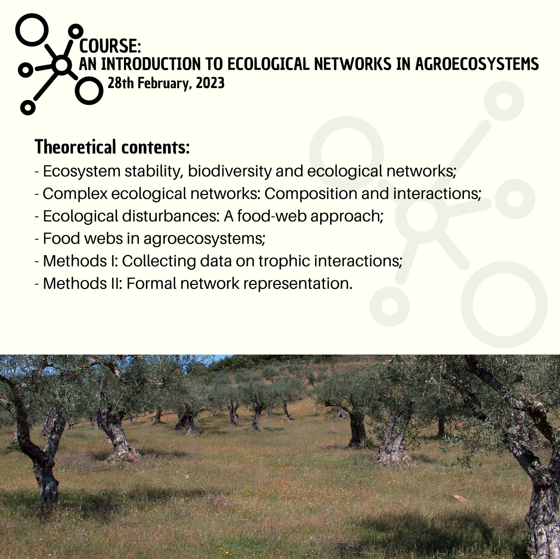 Networks in Agroecosystems”. The course will be taught by Marina Morente (University of Granada, Spain) and targets students, researchers and professors. Relevant information, please see here: